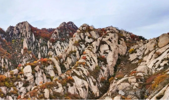 距县城50公里的莲花山,则演绎着“塞外小黄山”的壮阔与灵动。随着气温渐降,漫山灌木褪去翠绿,次第染上鲜红、橙黄的色彩,与山间苍劲的青松、形态各异的奇石相映成趣。从山脚到山顶,红、黄、绿三色层层递进,宛如一幅立体铺展的秋日油画。原始天然的风光吸引了大批徒步爱好者,他们穿梭于林间与奇石间,既感受到北方山水的雄浑大气,又能捕捉到秋日草木的细腻柔美,错峰出游的自在与惬意在此刻尽显。