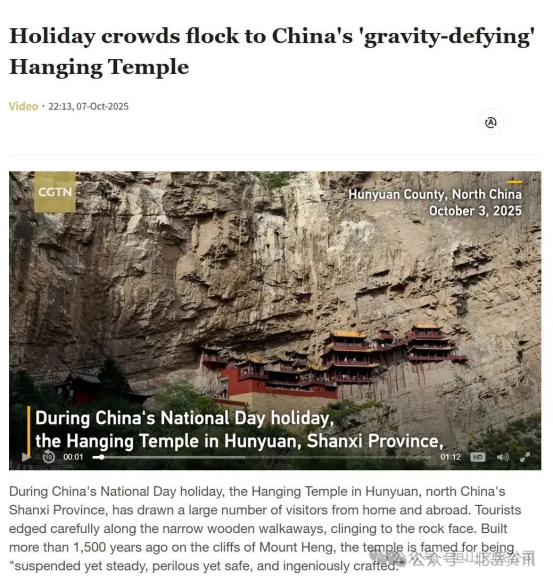 央媒密集报道,彰显浑源文旅影响力。国家级主流媒体以15篇报道形成传播矩阵,多角度聚焦浑源文旅亮点。中央电视台多频道联动发声,10月3日,央视网、CCTV-4《中国新闻》、CCTV-13《新闻30分》、CCTV-2《天下财经》同步推出《山西大同:悬空寺成热门打卡地吸引中外游客》,集中展现悬空寺魅力;10月6日,央视网和CCTV-3《文化十分》以《探五岳·谁执彩笔——北岳恒山:悬空问道笔墨生辉》为题,跟随艺术家共同在恒山的古刹奇峰间探寻传统与当代对话的可能。CCTV-13《法治在线》、《共同关注》则分别发布《以法之名让文物活起来!》、《国庆中秋假期·出游:中远程和近程客流同步上涨乡村游火热沉浸式体验自然田园之旅》,从文物保护与旅游趋势双重视角关注浑源;央视新闻客户端、央视影音客户端、央视网也同步报道了中远程和近程客流同步上涨的盛况。中国新闻网10月1日以《5大类28项200多场山西浑源精彩文旅盛宴喜迎游客》提前预热当地文旅活动;10月4日至5日,中华时尚网发布《恒山脚下村晚启,文旅融合展新篇--首届“北岳恒山・浑源村晚”启幕》,中国新闻网推出《文艺赋美乡村文旅共促振兴--“北岳恒山·浑源村晚”在神溪村盛大启幕》,聚焦乡村文旅融合新场景。