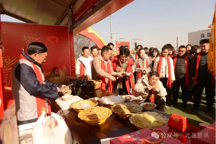 新春联欢的精彩不止于舞台,烟火气十足的特色年货大集同步开市,成为又一亮点。彩排现场,大集设置展位超70个,其中大同本土展位40余家、全国各地特色展位20余家。本土展区全方位展示全品类特色好物,恒山黄芪、黄小米飘香四溢,沙棘汁、杂粮、浑源老白干等农特产品琳琅满目,浑源凉粉、恒山宴黄芪羊等经典美食悉数亮相,面塑、剪纸等非遗技艺现场展演,尽显晋北文化独特魅力;全国展区汇聚天南地北特色好物,藏族、羌族、土家族等民族歌手现场演绎特色曲目,让游客赶集之余,尽享各地民俗风情。尝特色美食、赏非遗技艺、购各地好物,浓浓年味儿、民俗味儿、乡土味儿扑面而来,让游客沉浸式感受普天同庆、大地流彩的马年新春魅力。