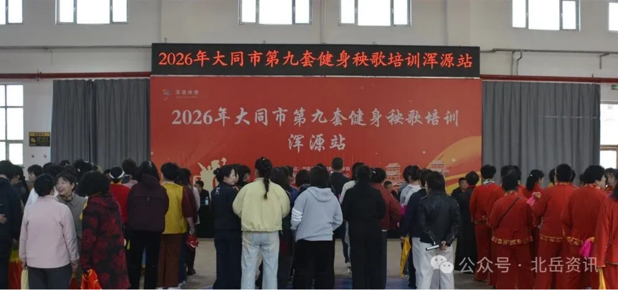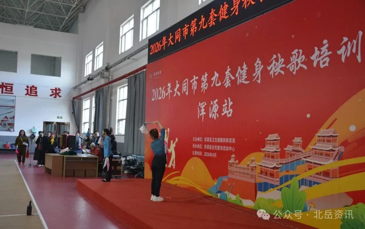 4月27日,由县卫生健康和体育局主办的2026年大同市第九套健身秧歌培训(浑源站)活动在全民健身中心举行。